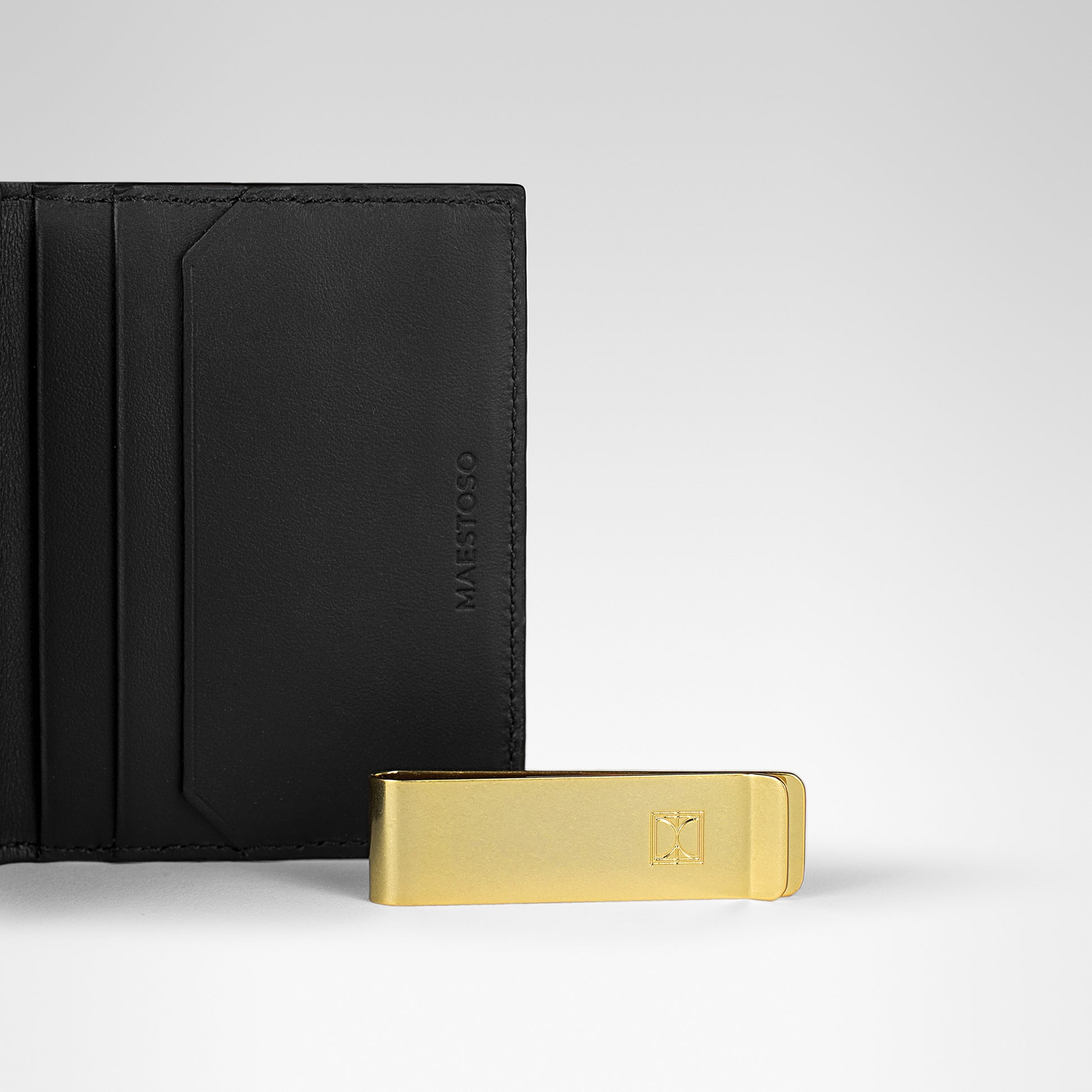 Designed for those who appreciate essentialism elevated to art, this compact silhouette brings together supple Italian leather and a sculptural brass money clip, engineered with the same precision that defines every Maison Maestoso creation.
