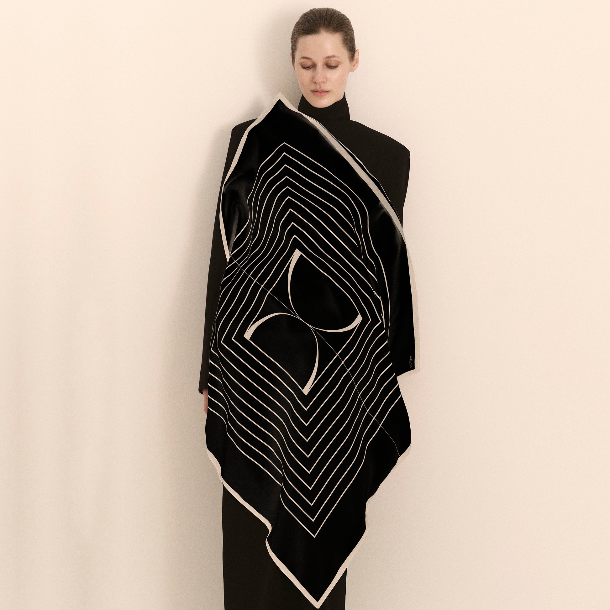 Crafted with the utmost attention to detail, this scarf is at once a work of graphic art and a timeless accessory, designed to be worn, collected, and treasured.