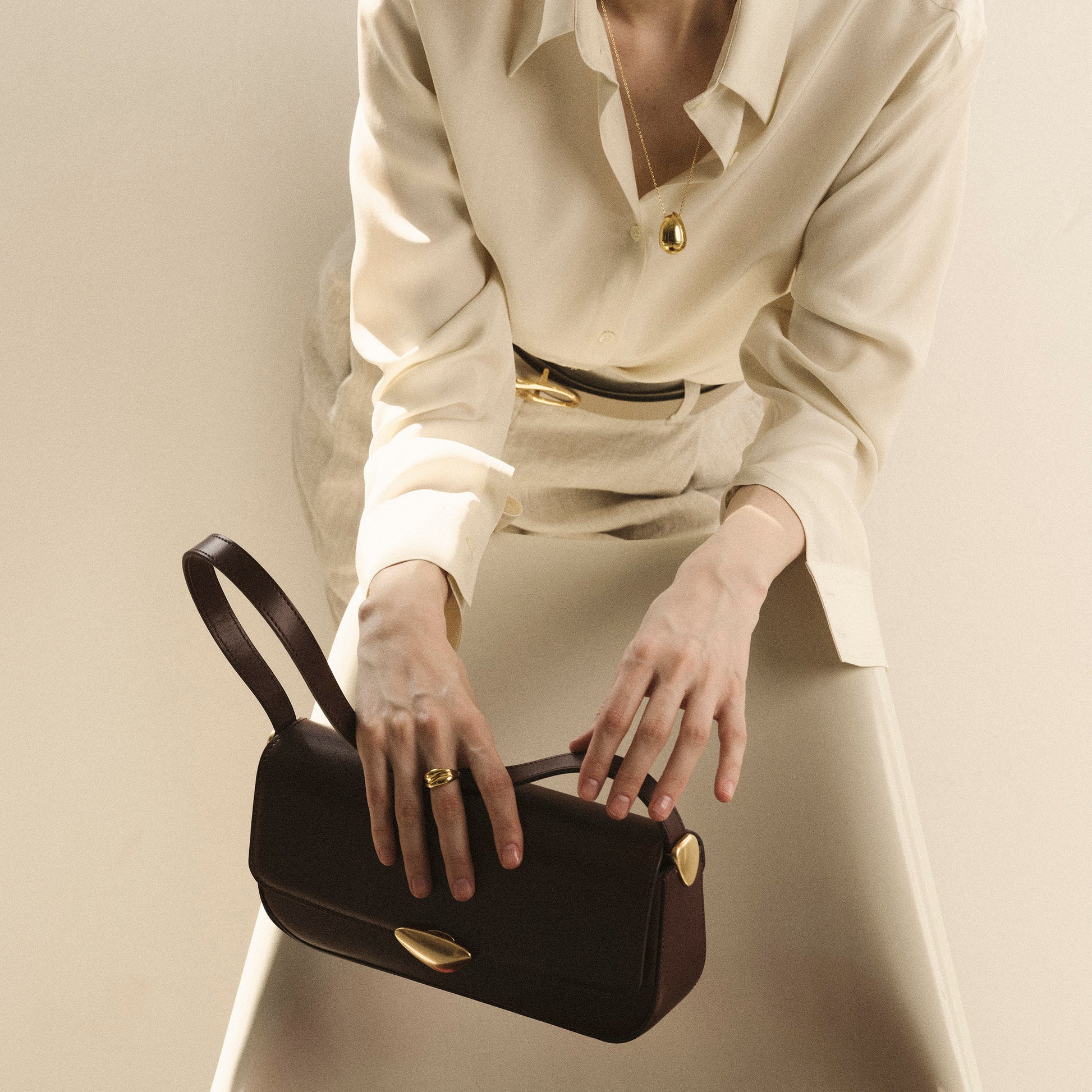A dialogue between structure and softness, the Noa Baguette distills the essence of the collection into a horizontally sculpted form that feels both contemporary and enduring. Its elongated body and gently arched base create a natural sense of movement, while the clean lines, softened edges, and sculptural signature lock speak to an understated yet powerful modernity.