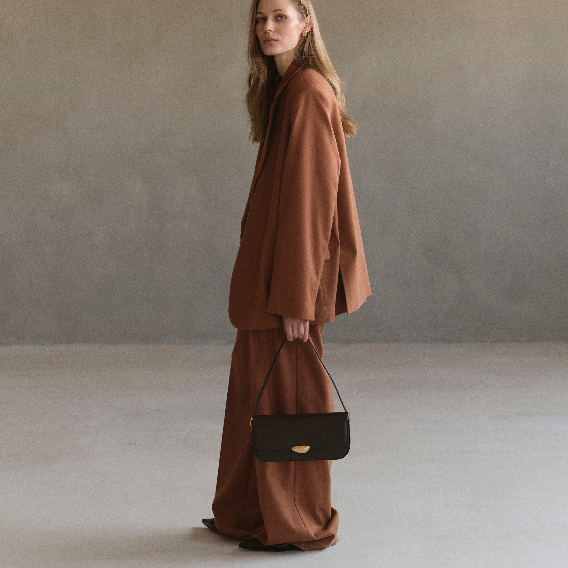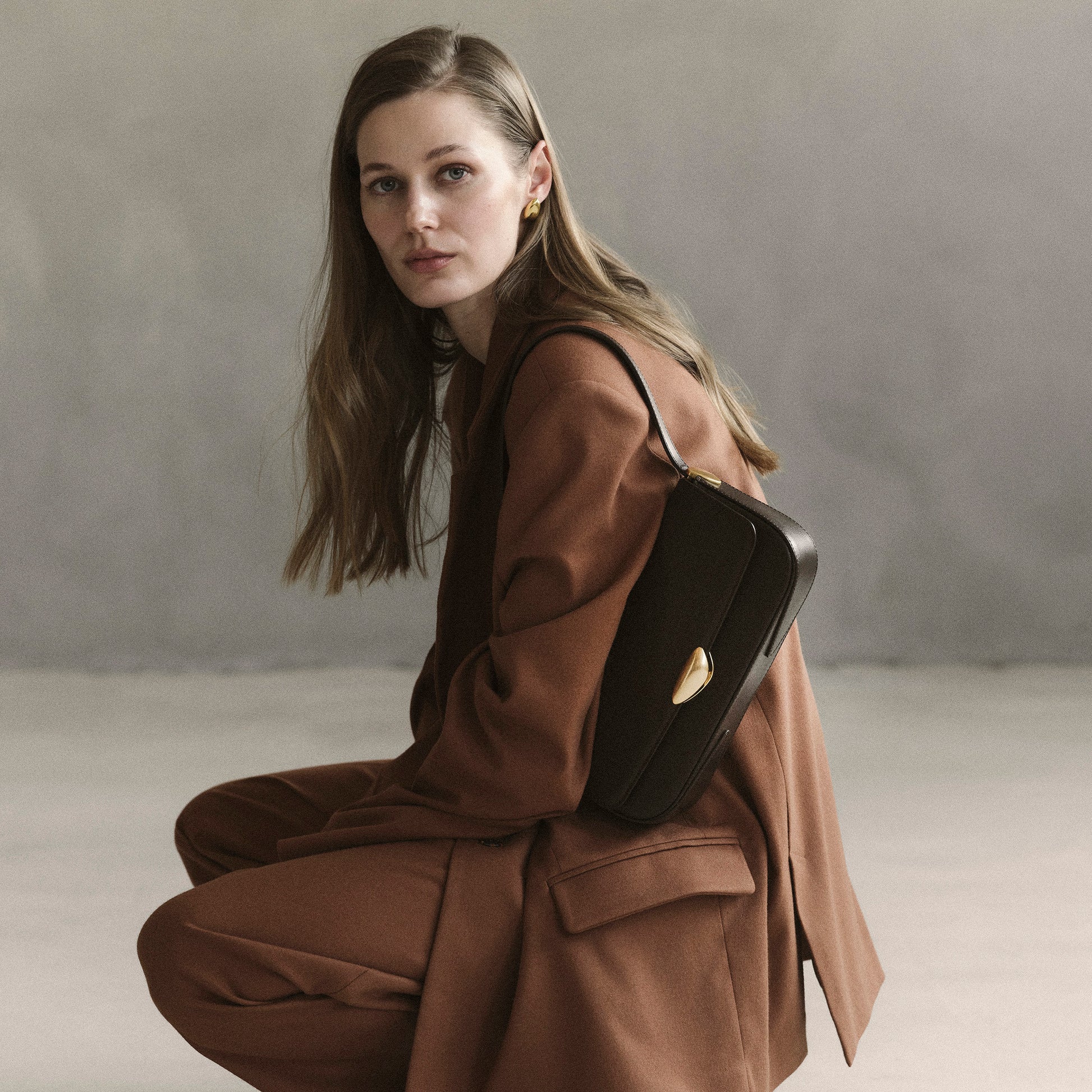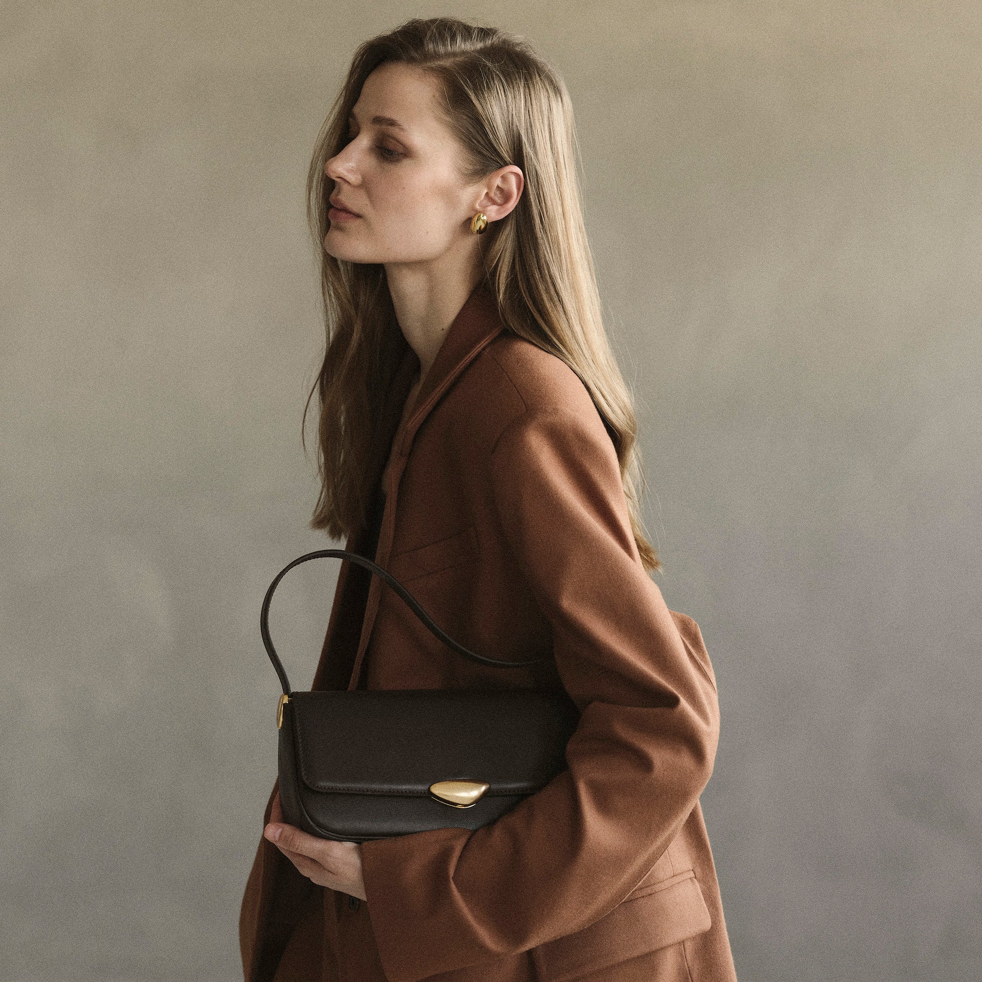 A dialogue between structure and softness, the Noa Baguette distills the essence of the collection into a horizontally sculpted form that feels both contemporary and enduring. Its elongated body and gently arched base create a natural sense of movement, while the clean lines, softened edges, and sculptural signature lock speak to an understated yet powerful modernity.