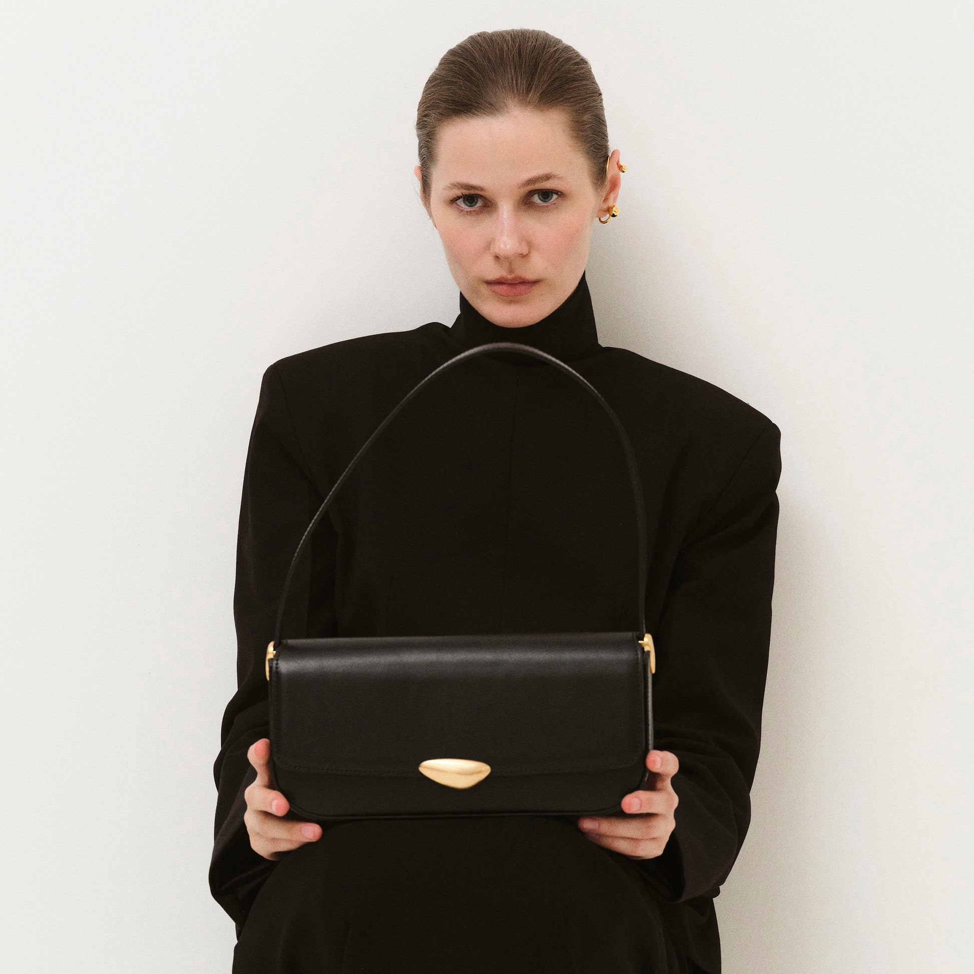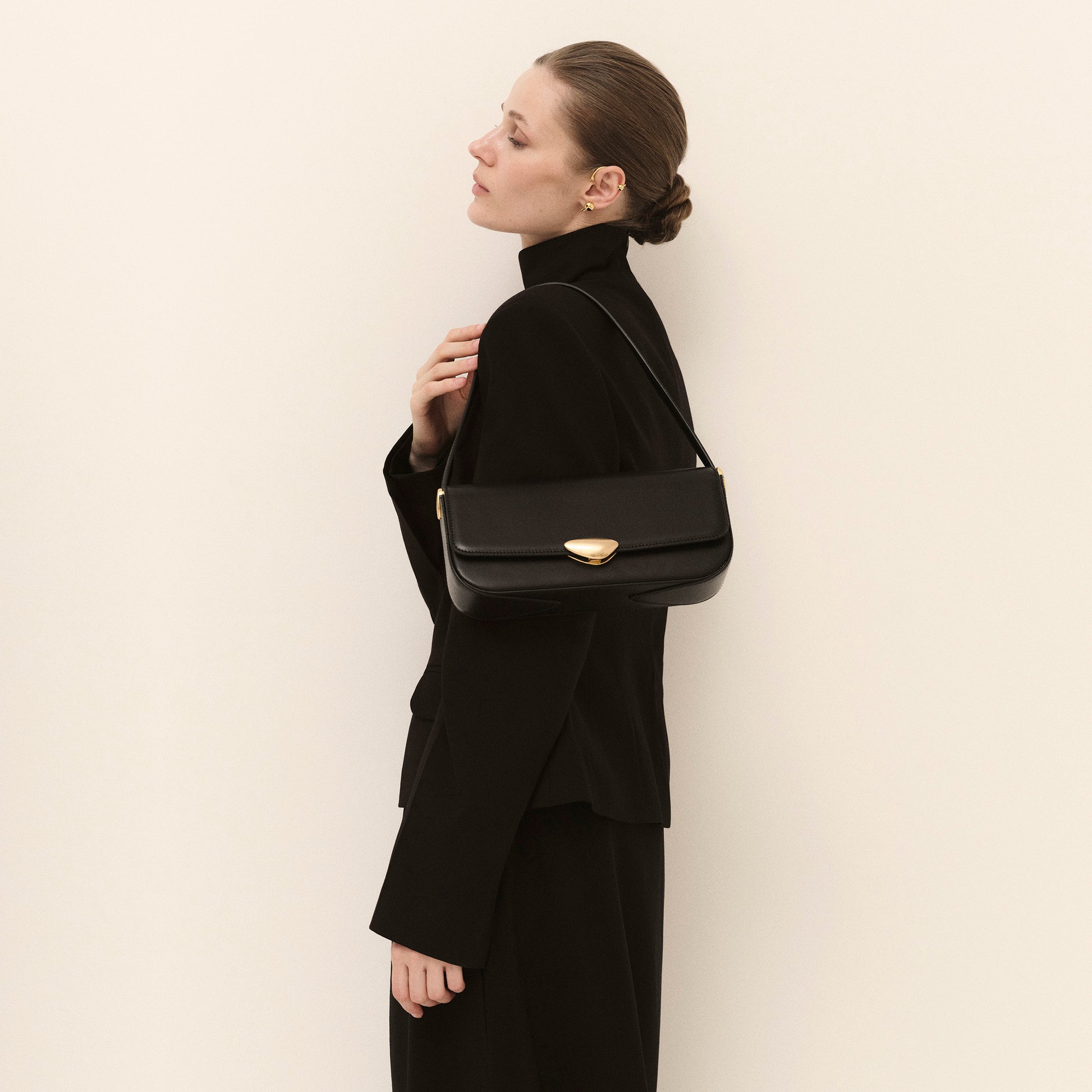A dialogue between structure and softness, the Noa Baguette distills the essence of the collection into a horizontally sculpted form that feels both contemporary and enduring. Its elongated body and gently arched base create a natural sense of movement, while the clean lines, softened edges, and sculptural signature lock speak to an understated yet powerful modernity.