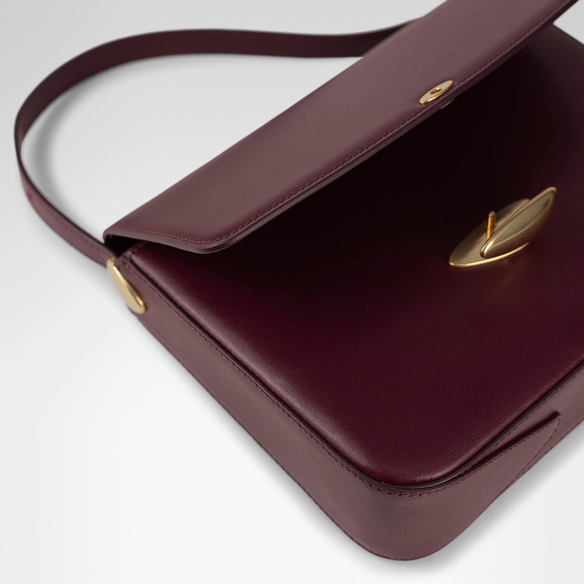 Refined to its architectural essence, the Noa stands as the largest member of the Noa family, a statement of sculptural poise and quiet power. Expanding the harmonious proportions of the Noa Mini, it embodies the same elegance on a grander scale. With its fluid curves, balanced volume, and the distinctive sculptural lock, the silhouette evokes a sense of graceful strength, an interplay between geometry and symbolism.
