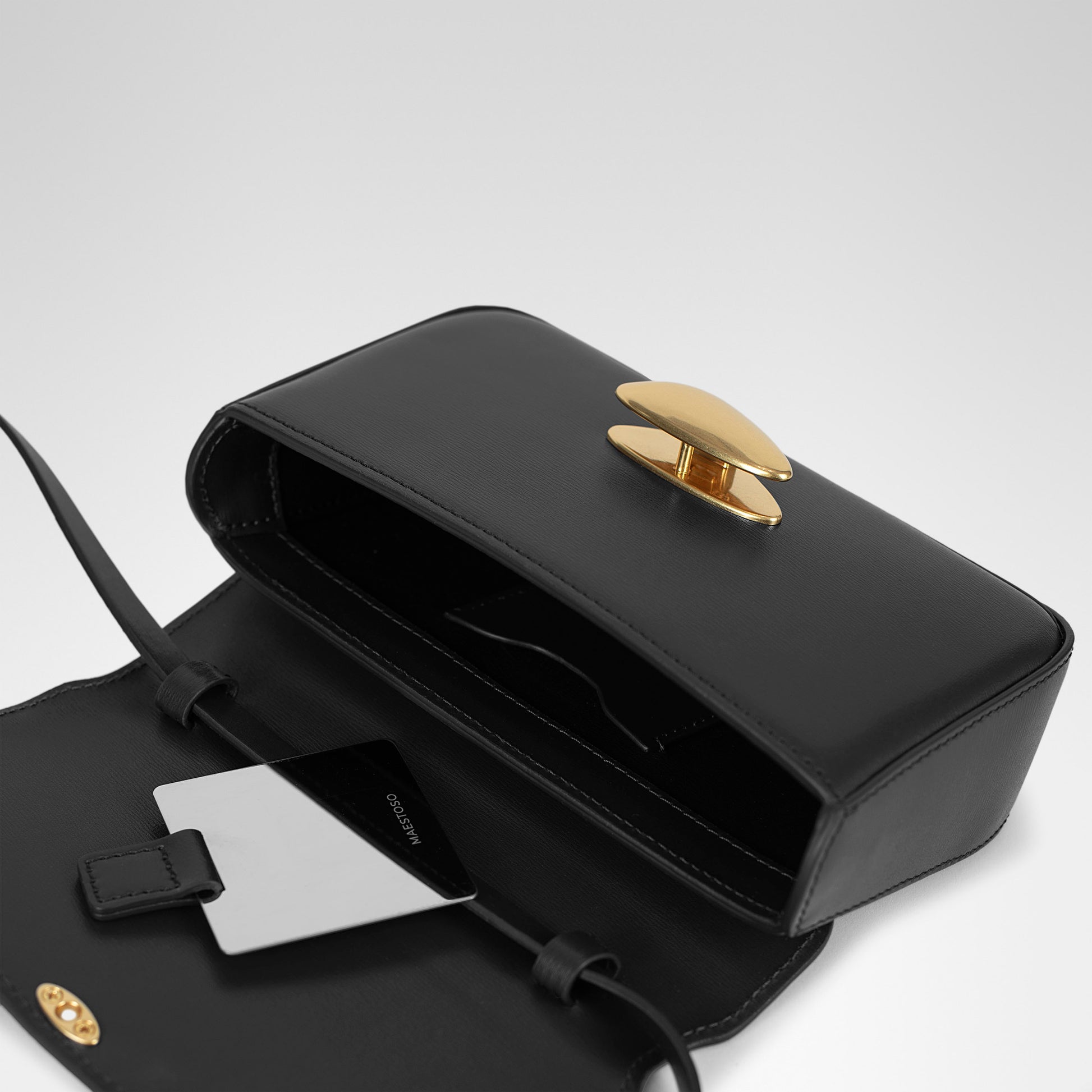 Refined to its very essence, the Noa Mini translates the quiet elegance of the collection into a smaller, more intimate form. With softly curved edges, perfectly balanced proportions, and the sculptural signature lock, the silhouette conveys harmony and grace in its most distilled expression. Its compact size makes it a companion of intimacy, designed to sit close, offering discretion without compromising presence. The adjustable strap introduces versatility, allowing the Noa Mini to adapt seamlessly to different occasions, whether carried by day or into the evening. Subtle yet sophisticated, it speaks of elegance in its purest form.