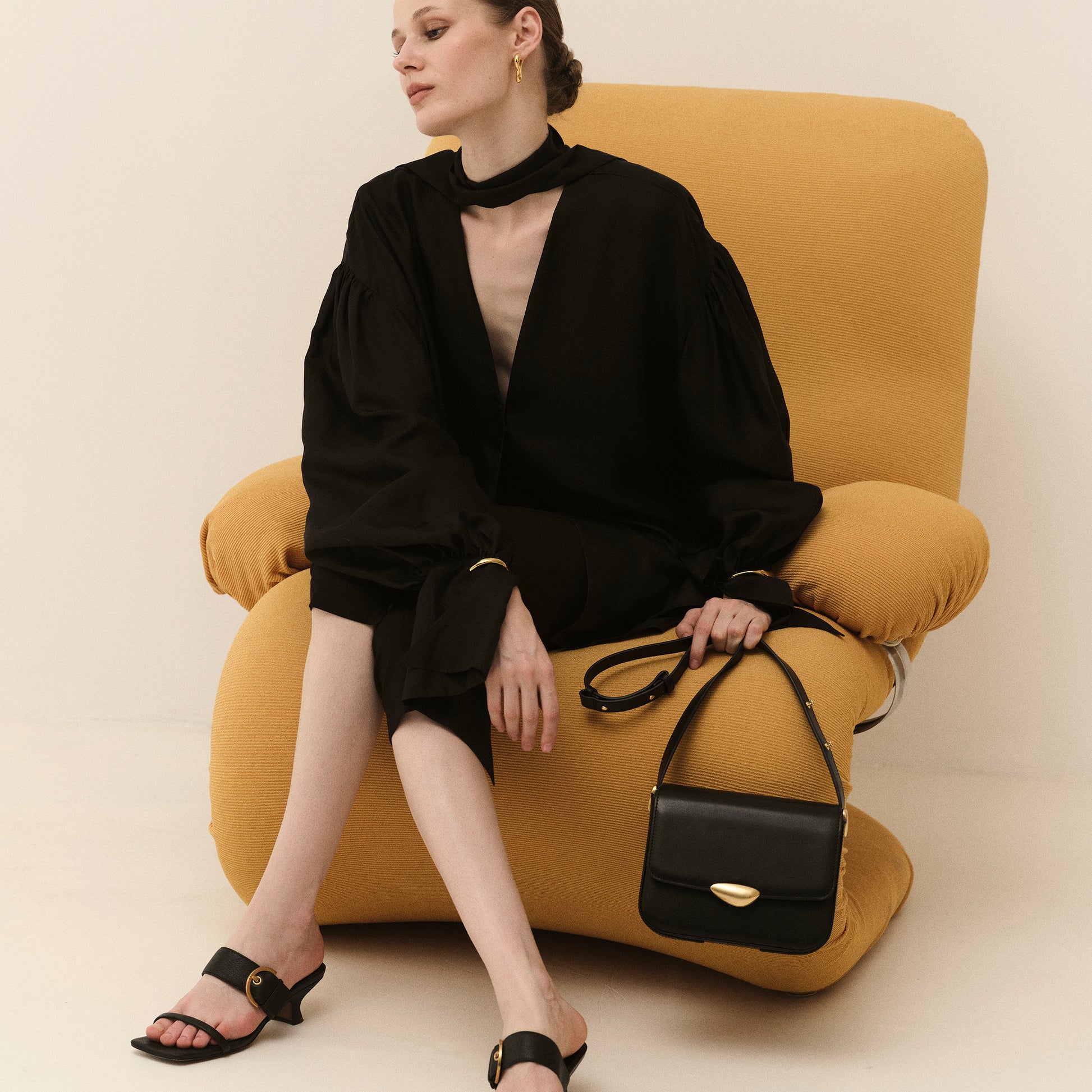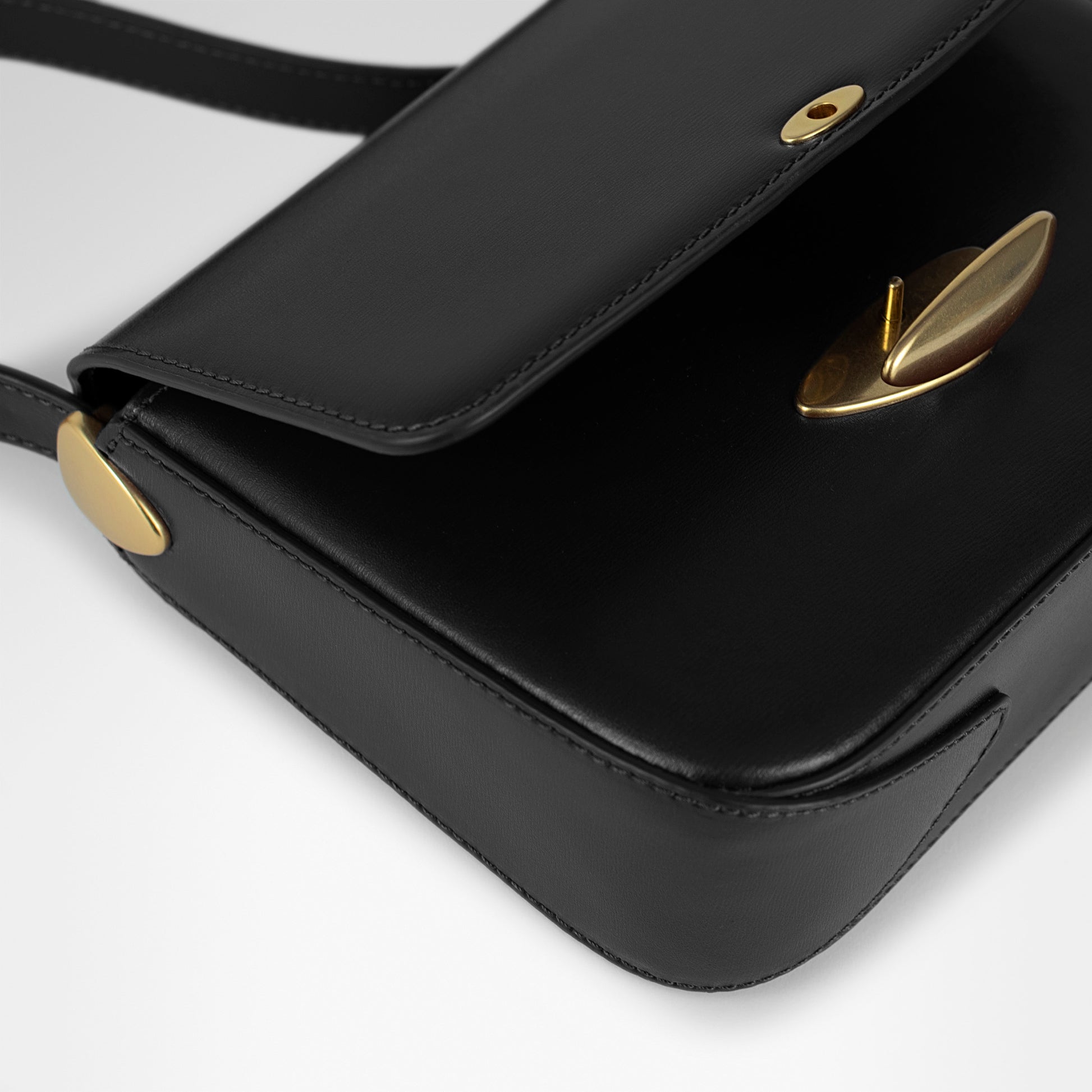 Refined to its very essence, the Noa Mini translates the quiet elegance of the collection into a smaller, more intimate form. With softly curved edges, perfectly balanced proportions, and the sculptural signature lock, the silhouette conveys harmony and grace in its most distilled expression. Its compact size makes it a companion of intimacy, designed to sit close, offering discretion without compromising presence. The adjustable strap introduces versatility, allowing the Noa Mini to adapt seamlessly to different occasions, whether carried by day or into the evening. Subtle yet sophisticated, it speaks of elegance in its purest form.