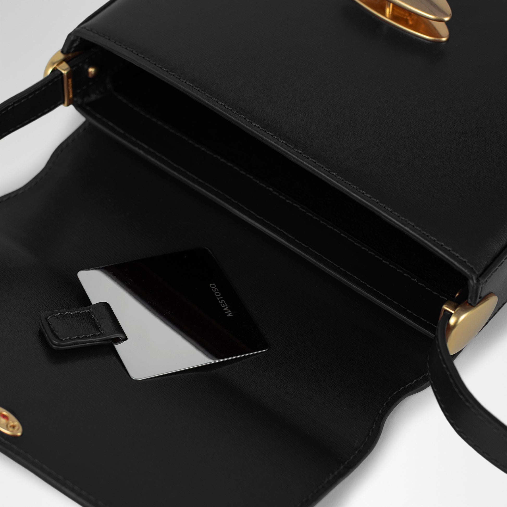 A beautiful detail shared by all handbags in the Gaia Collection, the Noa Baguette features a personalized mirror inside. An elegant secret that enhances its intimate character and discreet luxury.