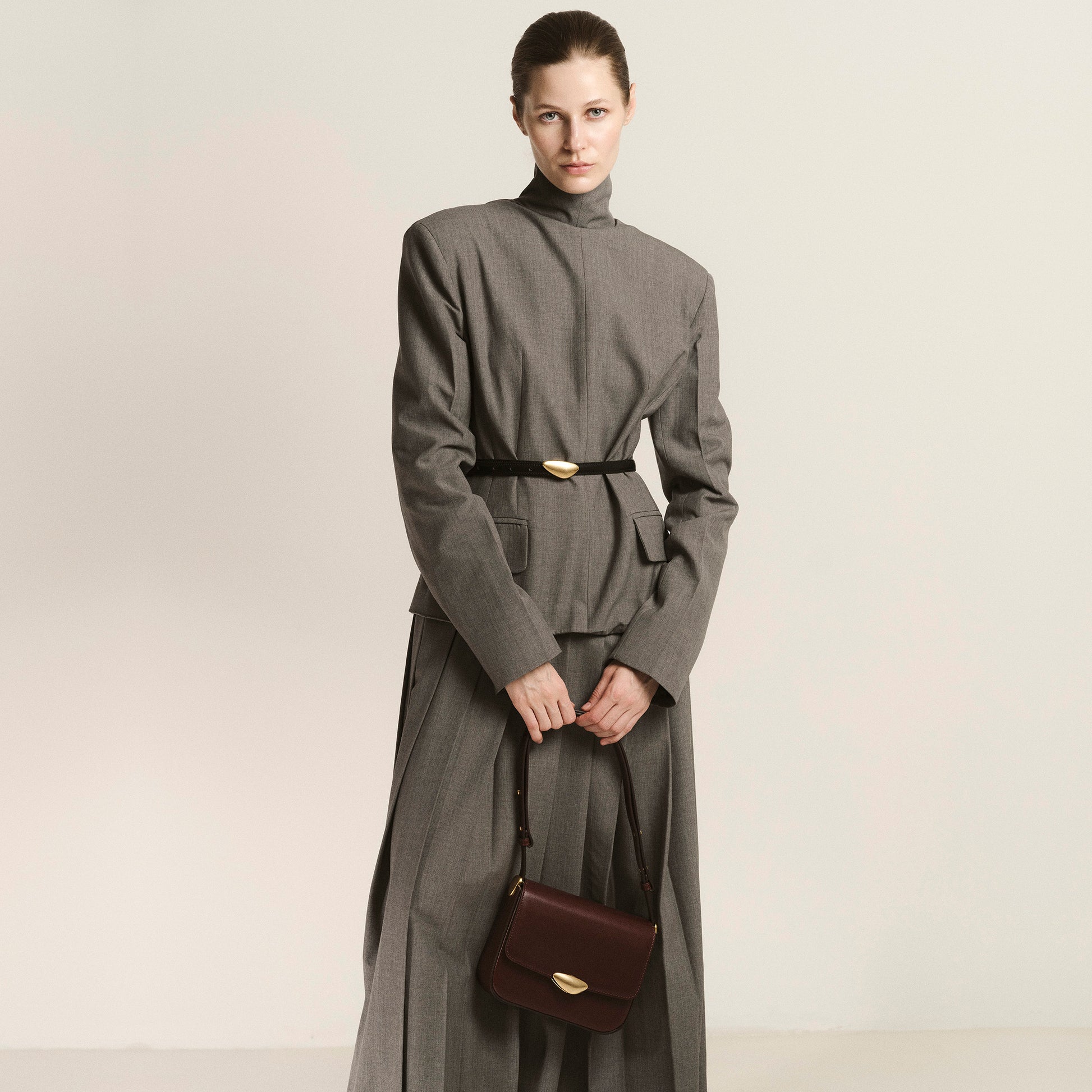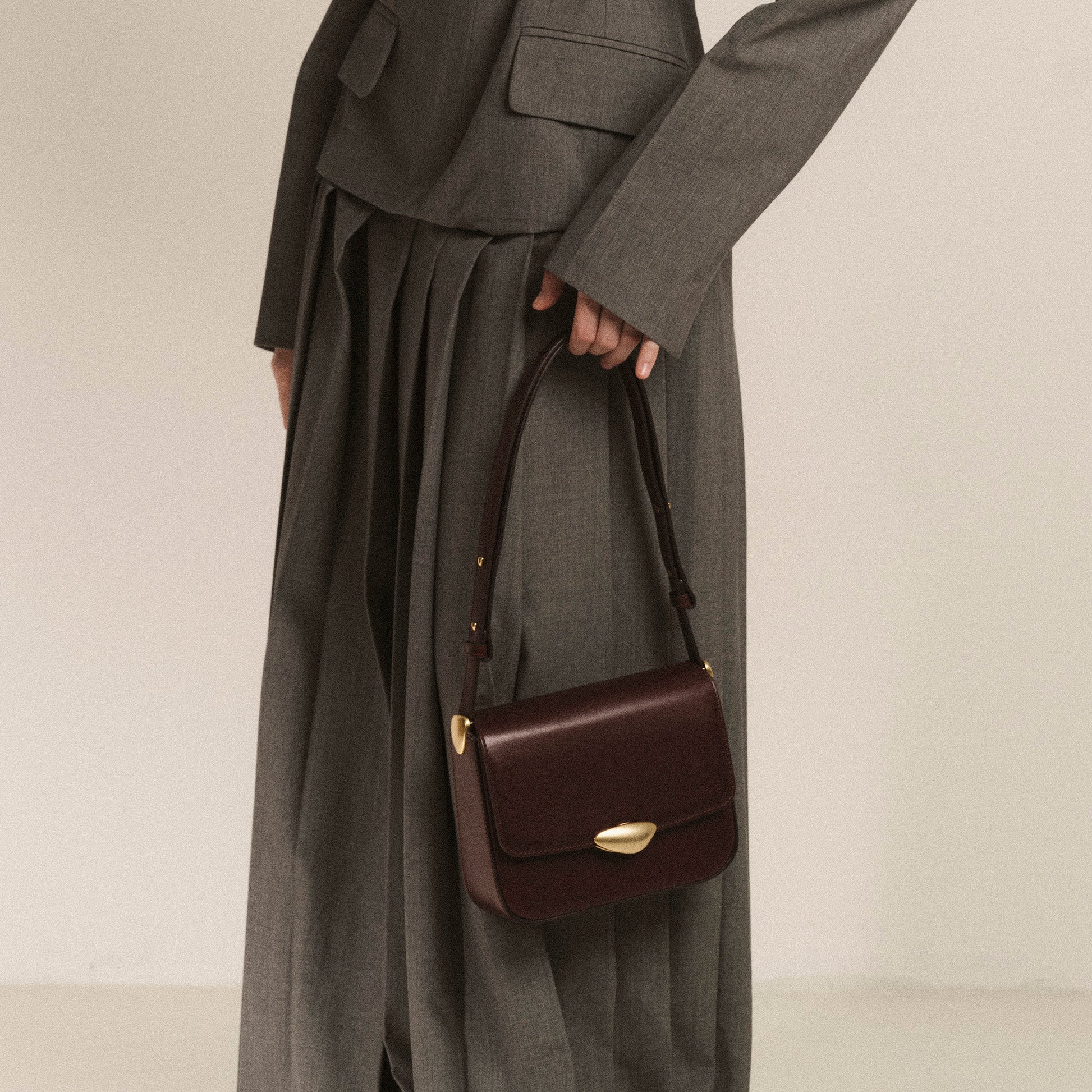 Refined to its very essence, the Noa Mini translates the quiet elegance of the collection into a smaller, more intimate form. With softly curved edges, perfectly balanced proportions, and the sculptural signature lock, the silhouette conveys harmony and grace in its most distilled expression. Its compact size makes it a companion of intimacy, designed to sit close, offering discretion without compromising presence. The adjustable strap introduces versatility, allowing the Noa Mini to adapt seamlessly to different occasions, whether carried by day or into the evening. Subtle yet sophisticated, it speaks of elegance in its purest form.