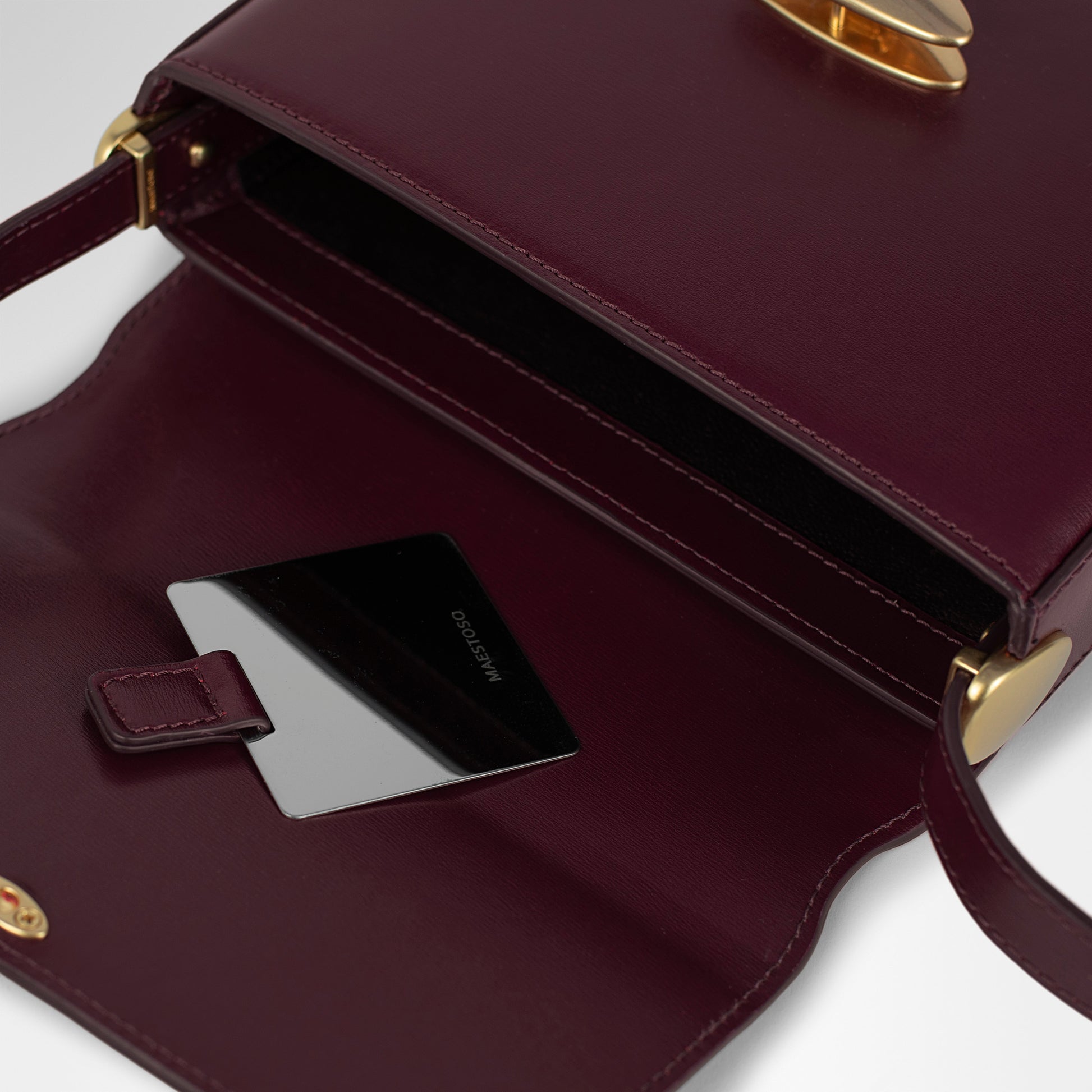 A beautiful detail shared by all handbags in the Gaia Collection, the Noa Baguette features a personalized mirror inside. An elegant secret that enhances its intimate character and discreet luxury.