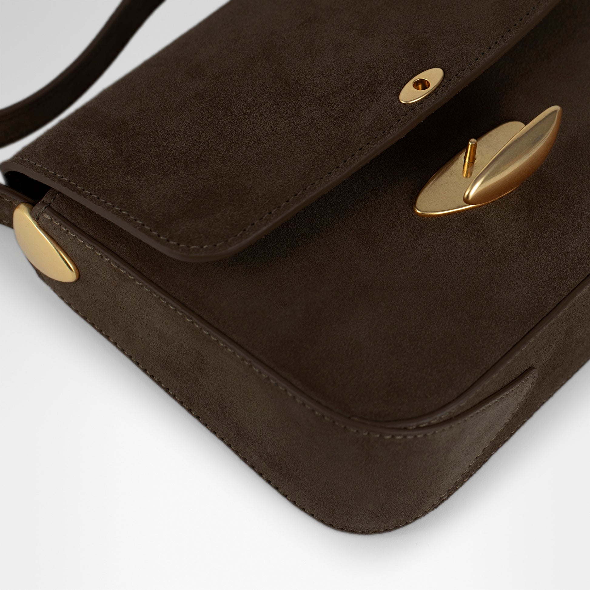 Crafted from a velvety suede Italian leather, meticulously chosen with consideration from a Gold-rated Italian tannery, recognized by the Leather Working Group, the bag achieves a subtle, refined and tactile appearance. Every detail is expertly brought to life by our skilled artisans, resulting in a timeless piece that reflects both our commitment to quality and the artistry behind its creation.