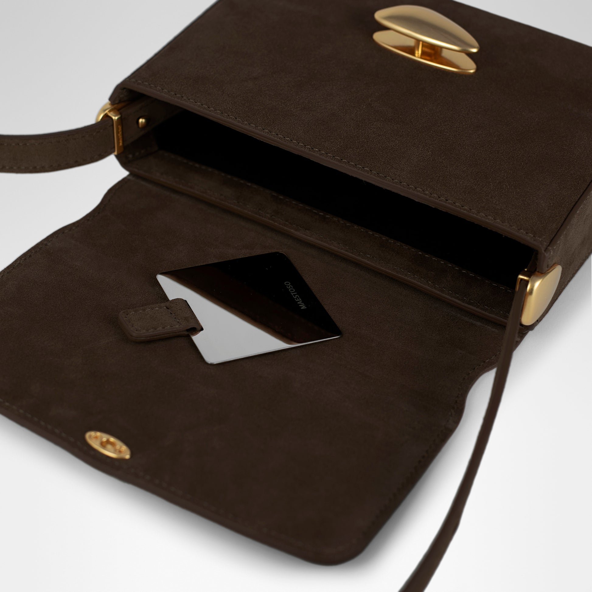 A beautiful detail shared by all handbags in the Gaia Collection, the Noa Baguette features a personalized mirror inside. An elegant secret that enhances its intimate character and discreet luxury.