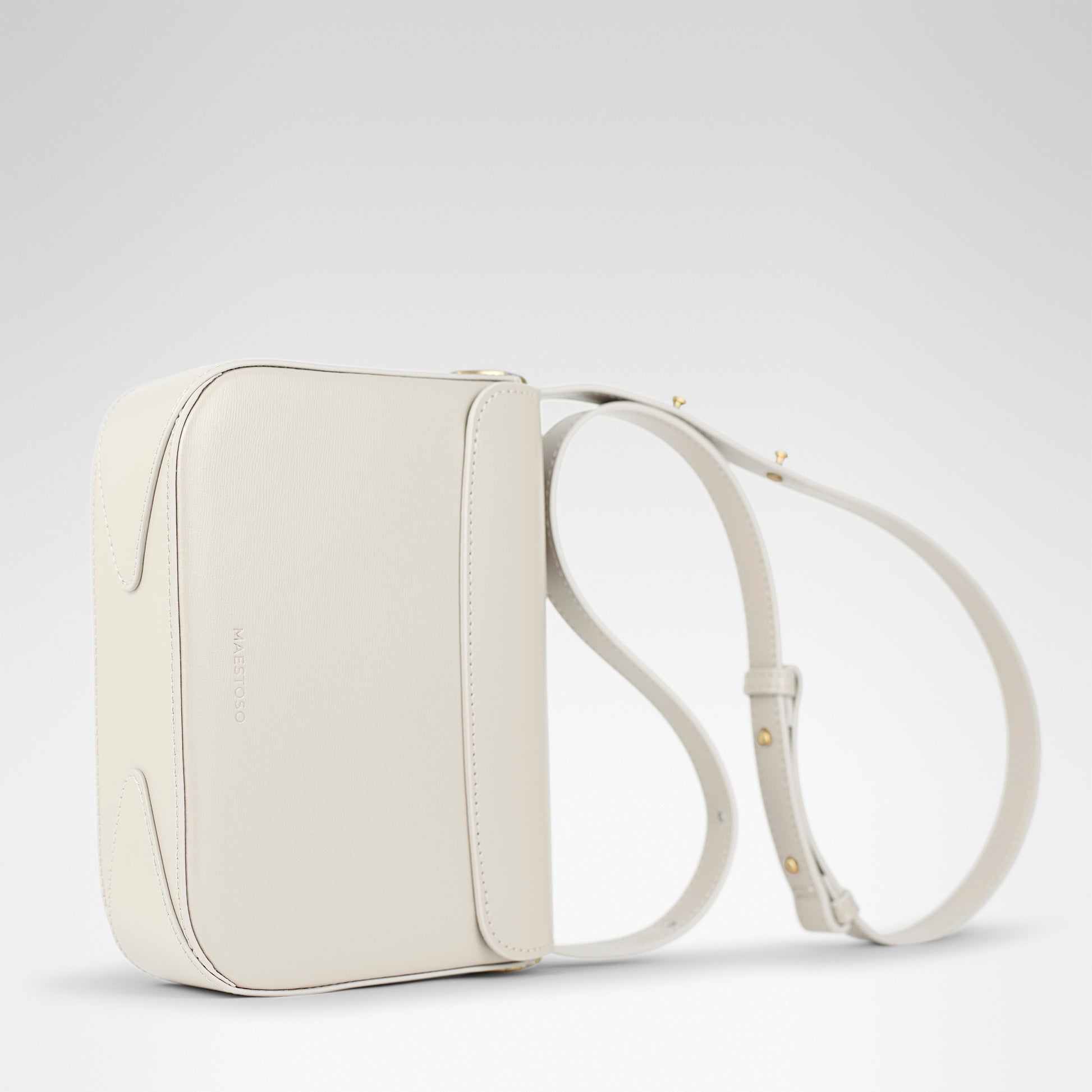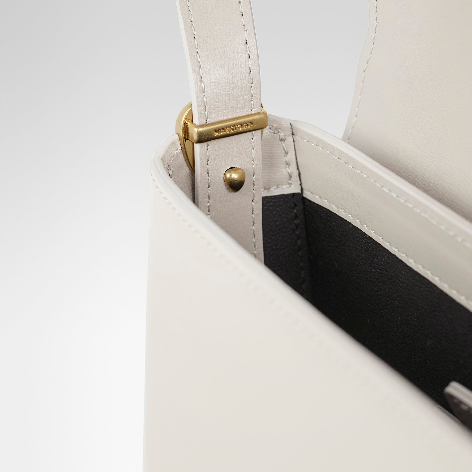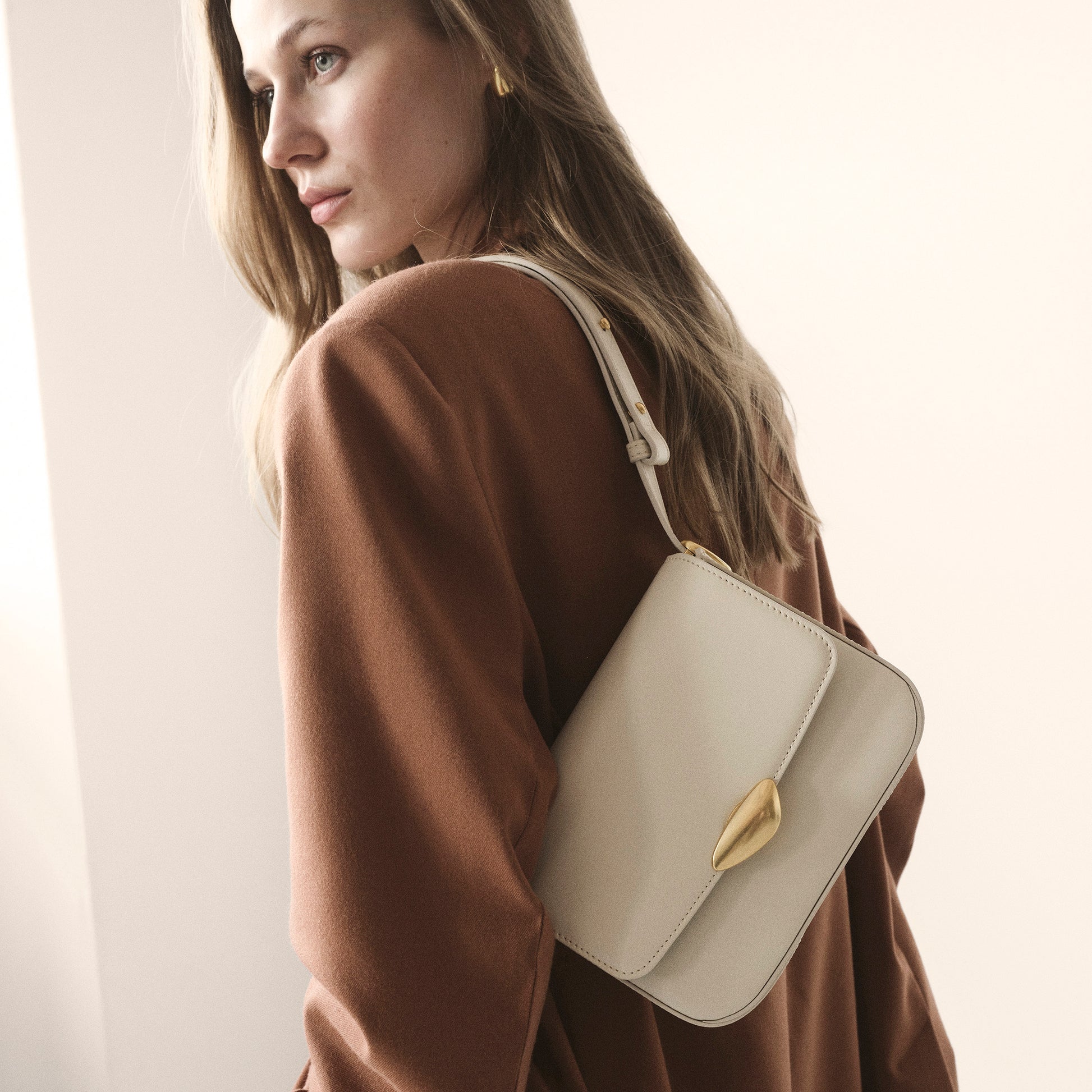 Refined to its very essence, the Noa Mini translates the quiet elegance of the collection into a smaller, more intimate form. With softly curved edges, perfectly balanced proportions, and the sculptural signature lock, the silhouette conveys harmony and grace in its most distilled expression. Its compact size makes it a companion of intimacy, designed to sit close, offering discretion without compromising presence. The adjustable strap introduces versatility, allowing the Noa Mini to adapt seamlessly to different occasions, whether carried by day or into the evening. Subtle yet sophisticated, it speaks of elegance in its purest form.