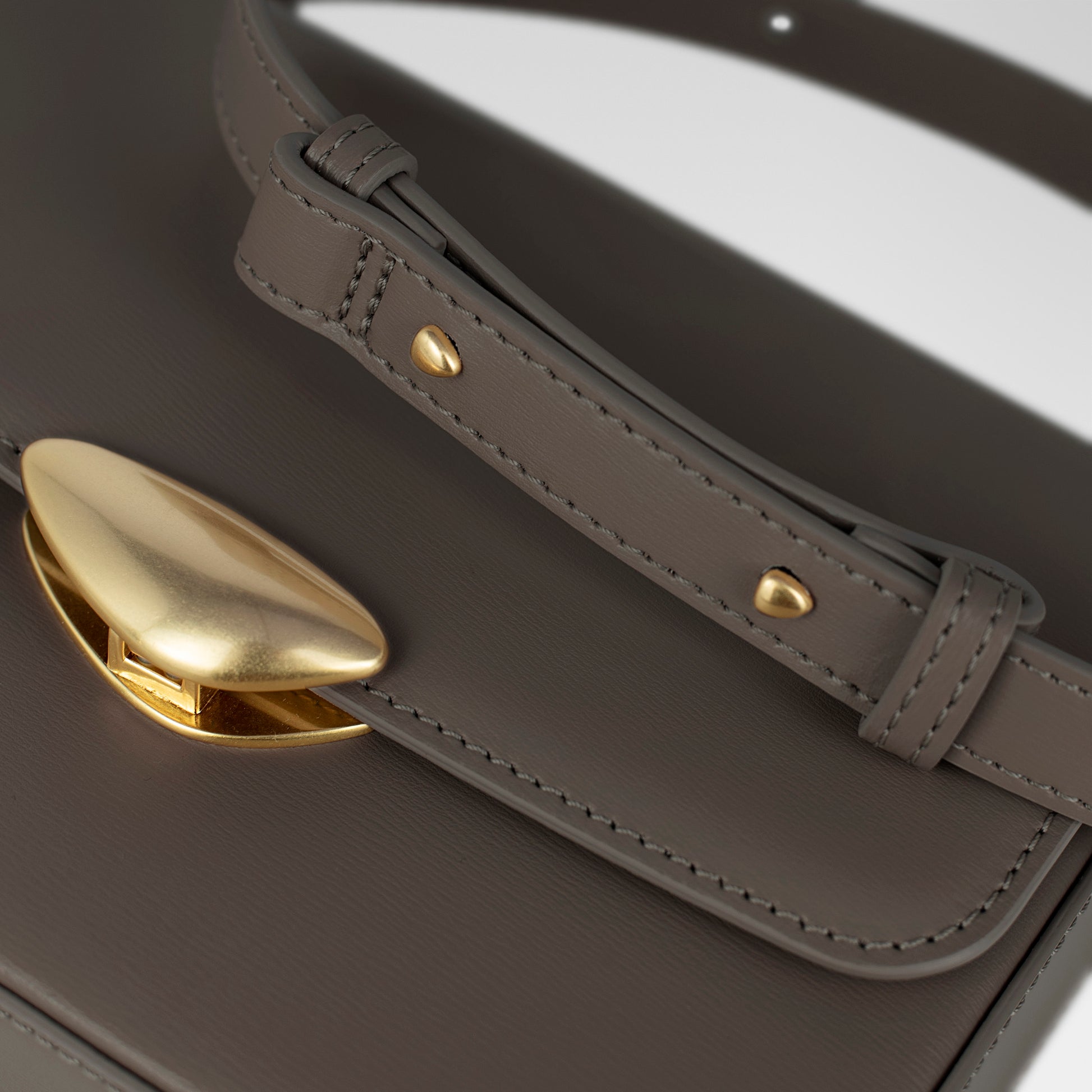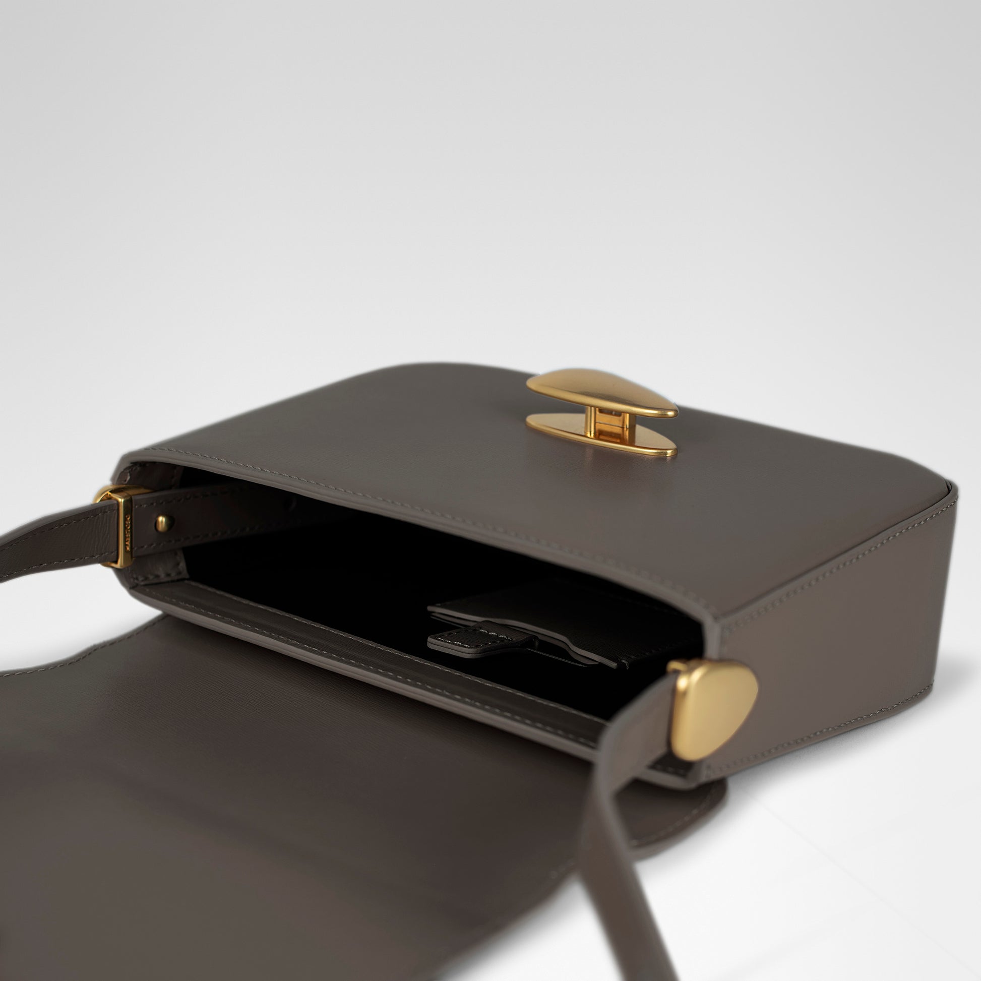 Refined to its very essence, the Noa Mini translates the quiet elegance of the collection into a smaller, more intimate form. With softly curved edges, perfectly balanced proportions, and the sculptural signature lock, the silhouette conveys harmony and grace in its most distilled expression. Its compact size makes it a companion of intimacy, designed to sit close, offering discretion without compromising presence. The adjustable strap introduces versatility, allowing the Noa Mini to adapt seamlessly to different occasions, whether carried by day or into the evening. Subtle yet sophisticated, it speaks of elegance in its purest form.