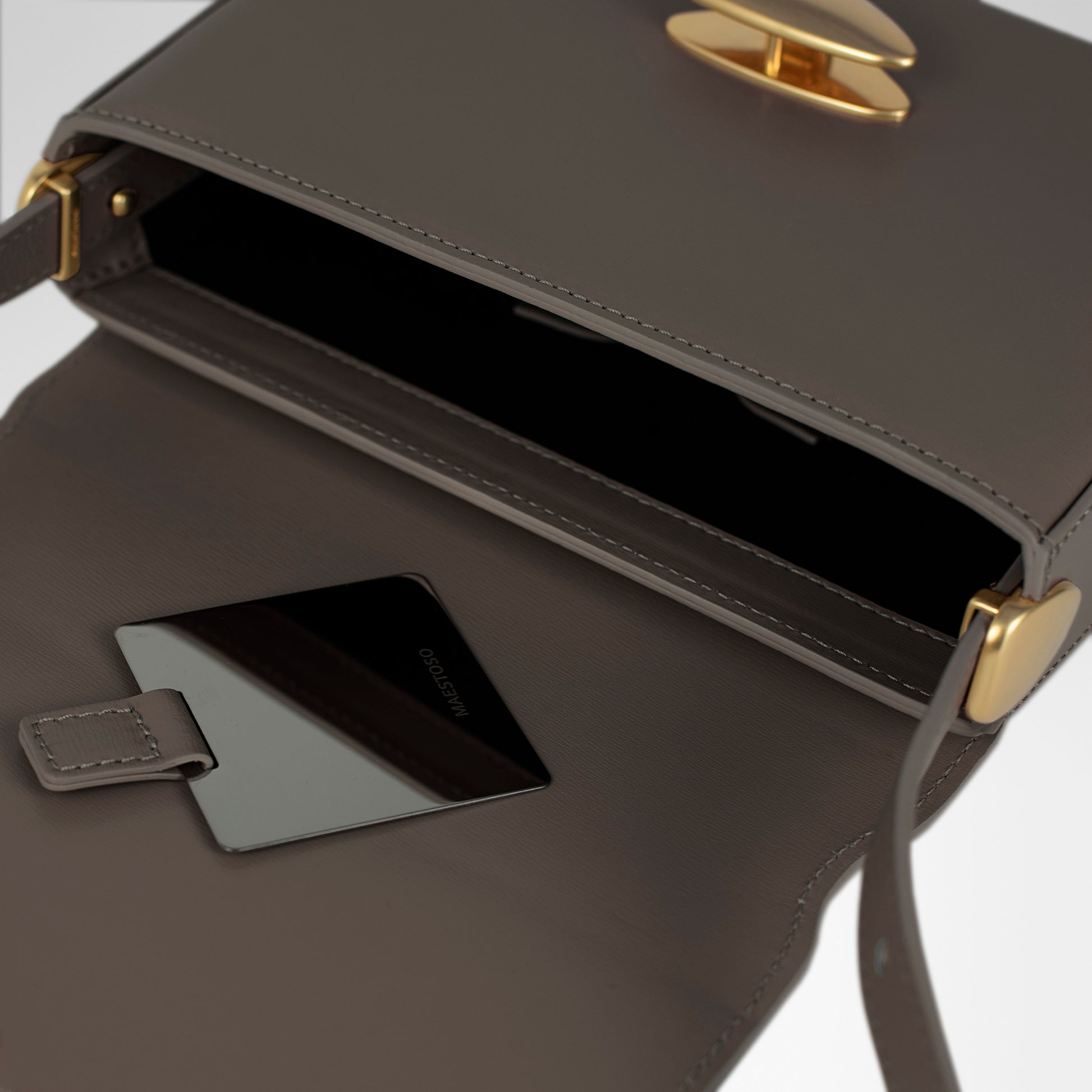 A beautiful detail shared by all handbags in the Gaia Collection, the Noa Baguette features a personalized mirror inside. An elegant secret that enhances its intimate character and discreet luxury.