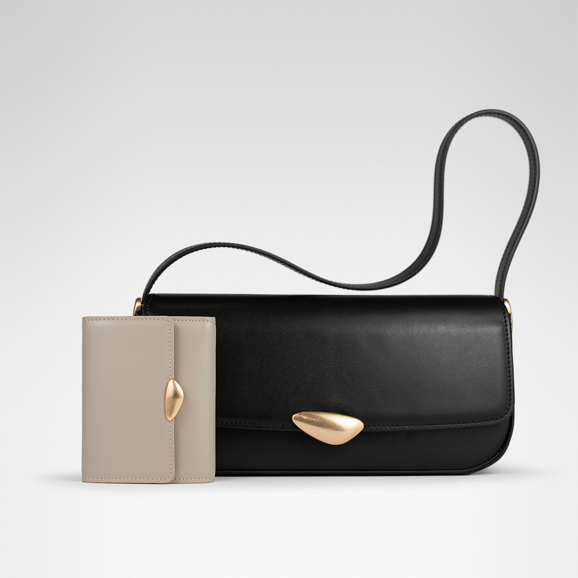 Portofelul Noa surprinde estetica rafinata a colectiei Gaia intr-un format compact si usor de folosit. Liniile curate, forma fluida si inchizatoarea aurie, purtand semnatura Maison Maestoso, pastreaza aceeasi identitate moderna si echilibrata pe care o regasim in gentile Noa.